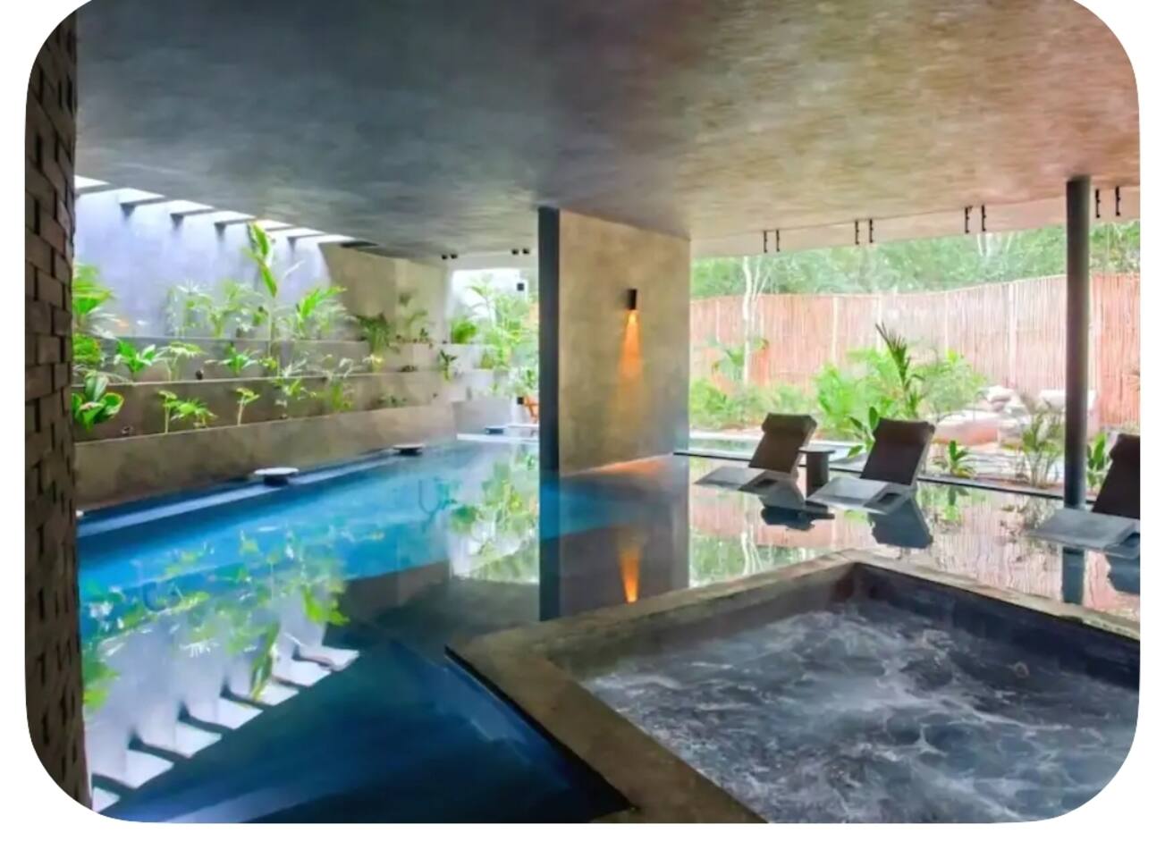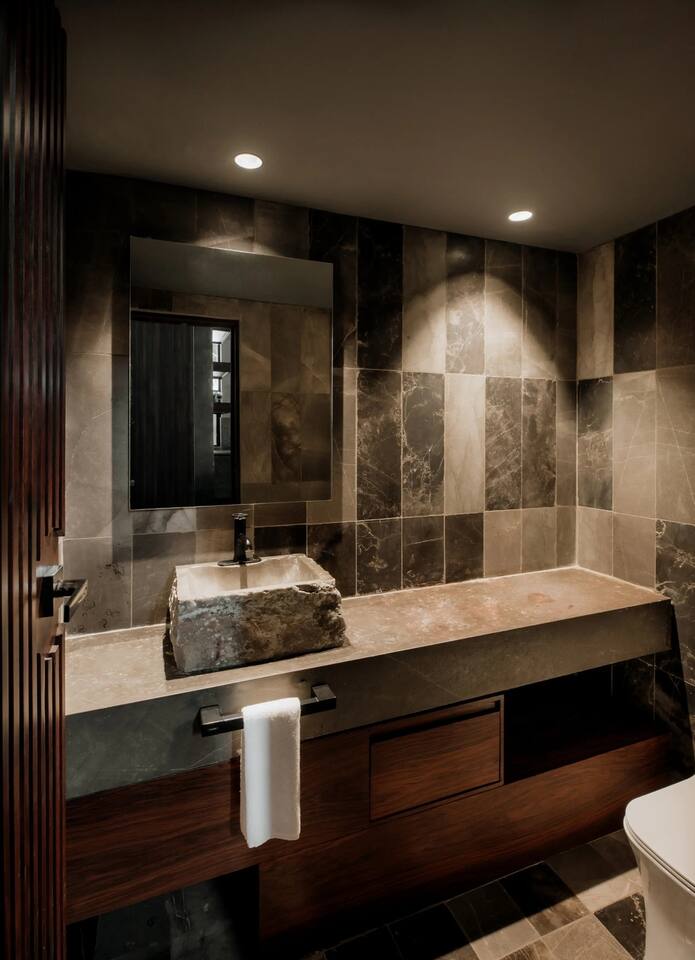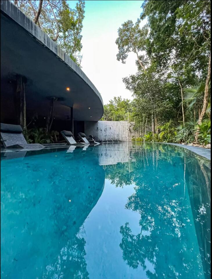 🏡 The Space Luxury, Design & Experience in Tulum Where New York sophistication meets Tulum luxury, this 4-bedroom designer villa in Aldea Zama Premium delivers a fully immersive stay for guests who value privacy, comfort, and elevated living. Located in one of the most exclusive gated communities in Tulum, this villa offers 24/7 security, lush jungle surroundings, and a peaceful, high-end atmosphere just minutes from the beach and top dining spots. 💎 Designed for Comfort, Style & Group Living This villa is thoughtfully curated to offer both luxury and functionality for up to 10 guests: * 🛏 4 spacious bedrooms with premium linens, ensuite bathrooms, A/C & Smart TVs * 🏊♀️ Private rooftop plunge pool with jungle views perfect for relaxing days & sunset nights * 🛋 Expansive living areas designed for lounging, socializing, and entertaining * 🍽 Fully equipped chef’s kitchen ideal for private dining or chef experiences * 🧠 Mezzanine space perfect for a workspace, bar setup, or quiet retreat * 📶 High-speed WiFi + smart home features throughout Every detail is designed to create a seamless indoor-outdoor luxury experience. 🧖♀️ Complimentary Spa Access Lúum Zama Enjoy exclusive access to one of Tulum’s most sought-after wellness spaces: ✨ Traditional Mayan temazcal ceremony ✨ Sauna & Turkish bath ✨ Hot & cold plunge pools ✨ Jacuzzi & hydrotherapy circuits ✨ Holistic massages & wellness treatments A perfect balance of relaxation, wellness, and rejuvenation during your stay. 📍 Prime Location Walkable Aldea Zama Stay in a top-rated Tulum location with everything close by: 🚶♂️ Walk to restaurants, cafés & boutiques 🌮 Trendy dining & nightlife nearby 🚲 Bike paths to Tulum Beach, Playa Paraiso & cenotes 🛍 Artisan shops & local markets No car needed enjoy a walkable luxury lifestyle in Tulum. 🌴 Indoor Outdoor Living at Its Best ✨ Rooftop pool & private terraces ✨ Open-concept design with natural light ✨ Tropical greenery & jungle views ✨ Gated community with 24/7 security This villa offers the perfect mix of privacy, nature, and modern luxury. 🌟 Perfect For ✔ Group getaways & celebrations ✔ Families & friends traveling together ✔ Wellness retreats & relaxation stays ✔ Luxury travelers exploring Tulum 🛎 Concierge & Experience-Driven Stays Enhance your stay with full-service concierge options: * Private chefs & in-villa dining * Airport transfers & private drivers * Yacht charters & boat experiences * ATV, scooters & bike rentals * Spa treatments, yoga & wellness sessions * VIP reservations for beach clubs & top restaurants Everything is designed to deliver a stress-free, fully serviced luxury experience. ⚠️ Guest Notes * Access via stairs (no elevator) rooftop views are worth it ✨ * Suitable for families, but rooftop pool & open layout may not be ideal for very young children
